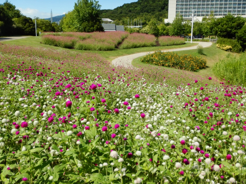 大地の虹北花壇はジックリ見るとまだきれいな状態の花が散見されますが、全体の印象としてはほぼ終わりに近づいています。