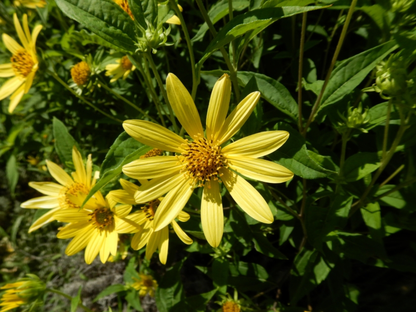 直径7㎝ほどのレモンイエローの花がたくさん咲き始めました。地味だけど一応ヒマワリの仲間です。