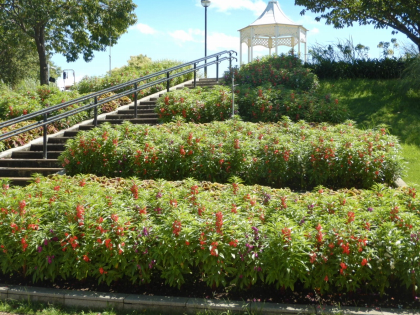 植物管理課長の強い希望で植えられたホウセンカ。今までにないくらい、さえない映えない階段花壇だと思うんですけど、いかがでしょう?もしかして「こういうのがいいんだよ」という人もいるのかも…?ということで、一回くらいは紹介することにしました(多分もう載せない)。