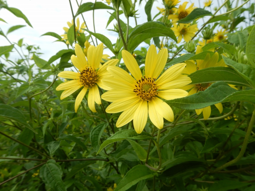 直径7㎝ほどのレモンイエローの花がたくさん咲き始めました。地味だけど一応ヒマワリの仲間です。