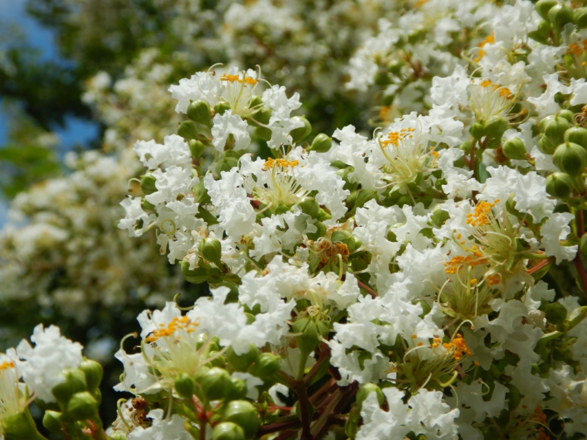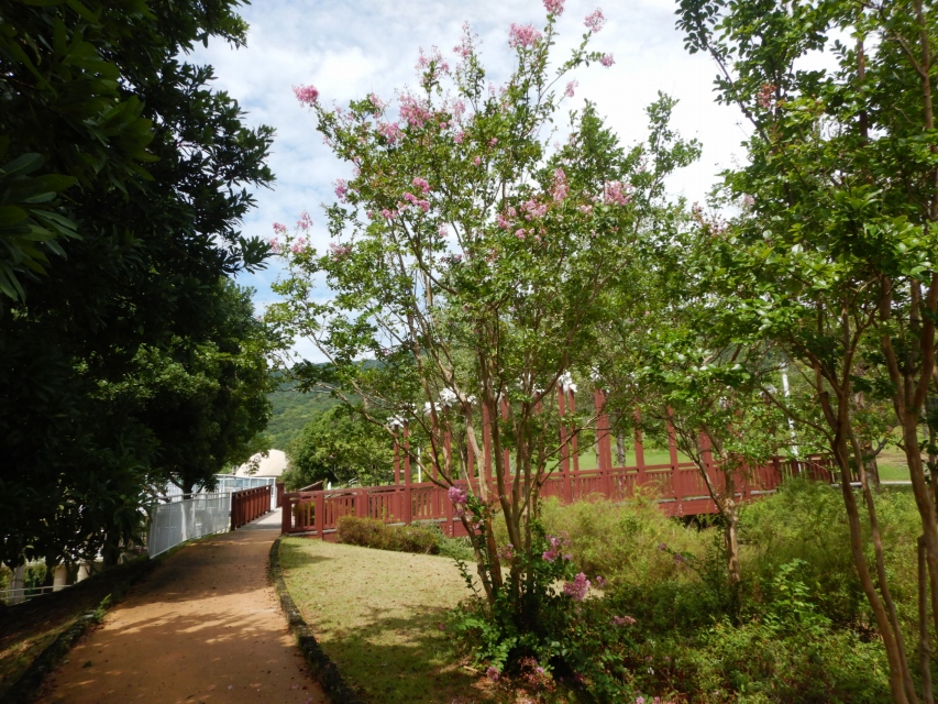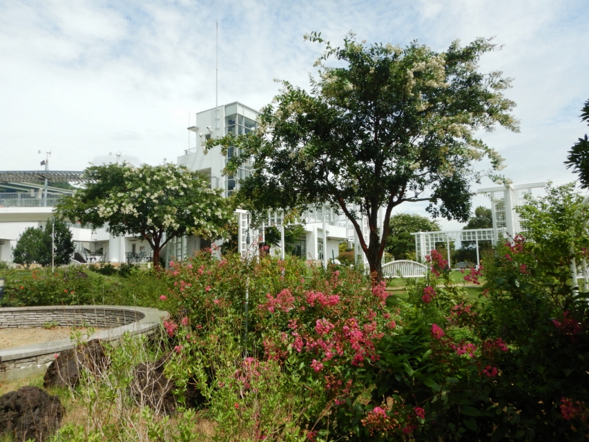 園内ではサルスベリ、シマサルスベリ、イッサイサルスベリがご覧いただけます。白、赤、濃桃、ピンクなどなど、ちょっとずつあります。