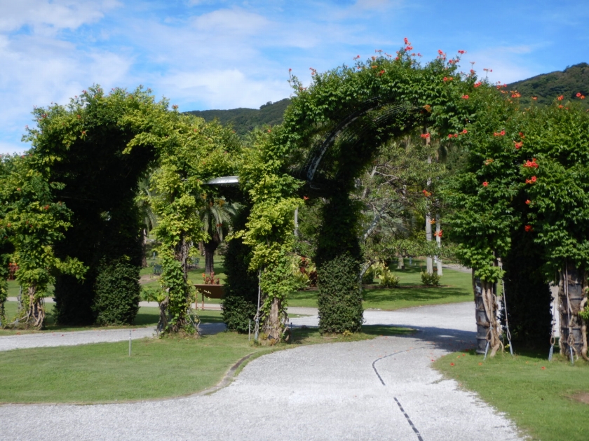 海のテラスのアーチや芝生広場周辺のフェンスに絡みついているノウゼンカズラ。ひとつひとつの花の寿命が短いため、日によって数輪しか咲いていない日も。