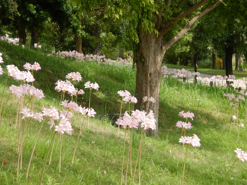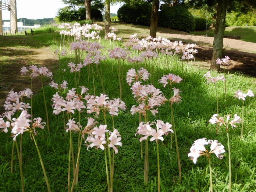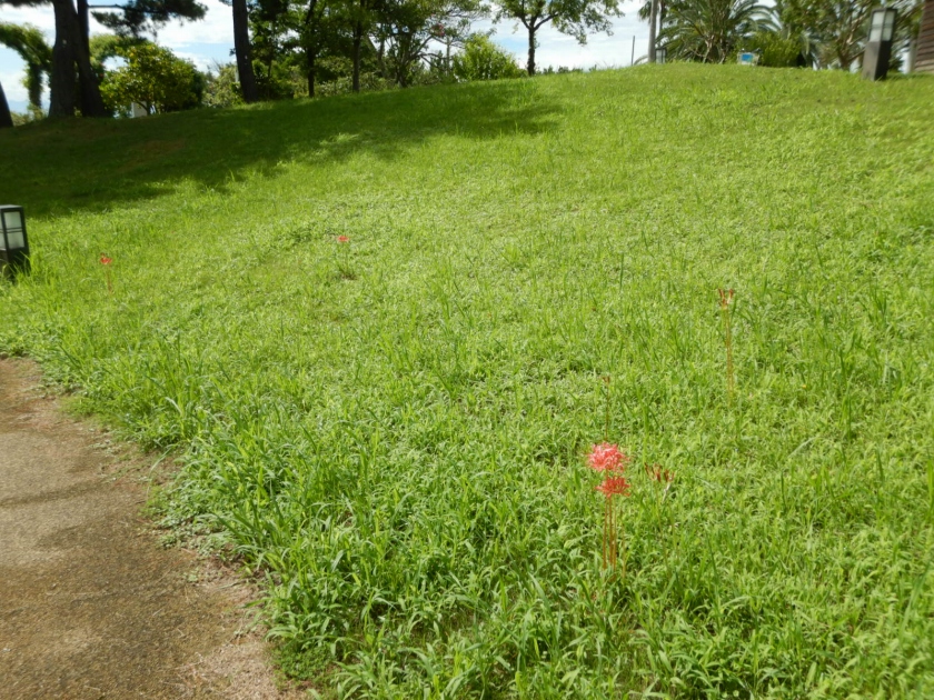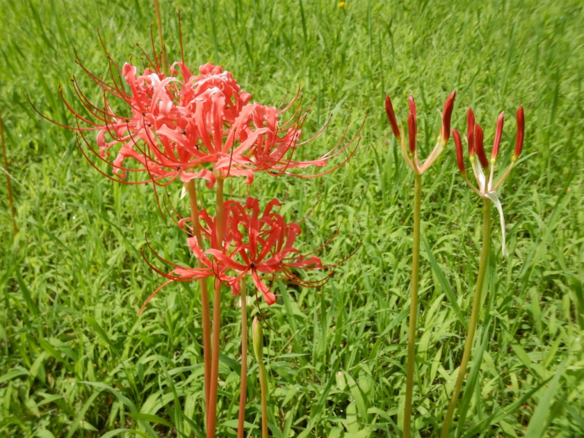 子どもの森寄りの場所には数本だけリコリス・スプレンゲリーという青みがかった花も咲いてます(四枚目)。