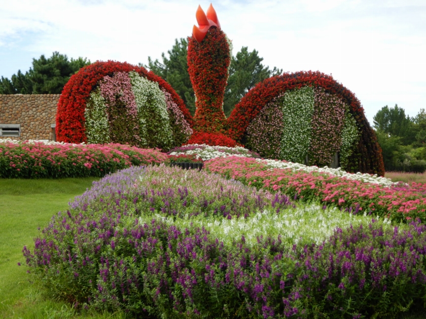 立体花壇「花火鳥」を彩るお花たち(場所:大地の虹)