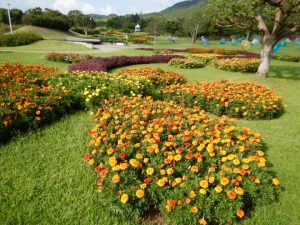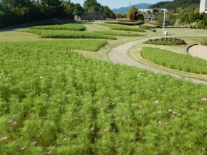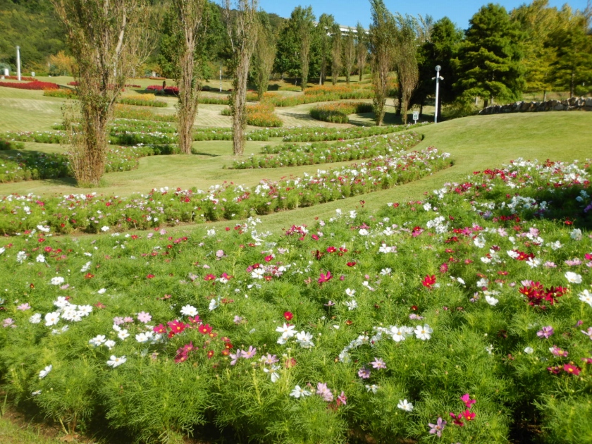 大地の虹北花壇は品種別で植えてあり、品種によっては開花がチラホラ見えます。が、全体的には「咲き始め」と言えるようになるのは10月2週目以降じゃないかなぁと。