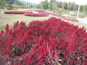 ◆ケイトウ(鶏頭):見ごろ(一部倒れています)  場所:ポプラの丘、海のテラス
