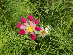 下段も複数の色が見えますが、こちらは同じ品種の色違いミックスで、ひざ丈程度の高さです。