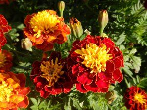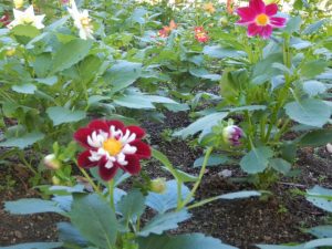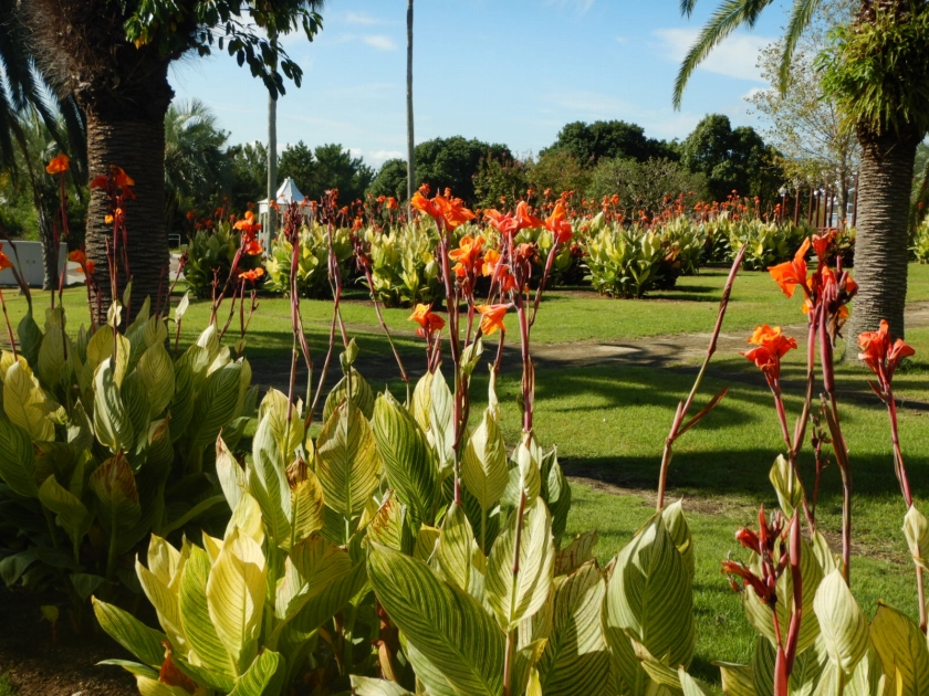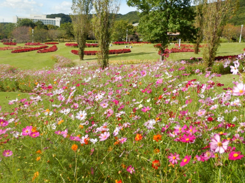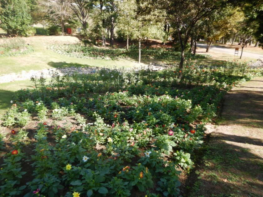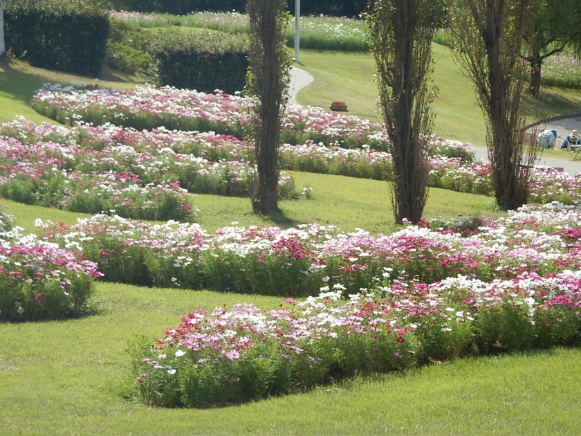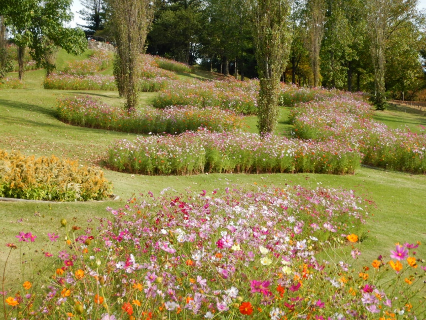 赤、黄、オレンジ、ピンクなど多種の花色が楽しめます。成長し過ぎで倒れてしまった部分もあり、近くで見ると微妙ですが、まだまだ色はハッキリしているので遠目に見る分にはきれいです。