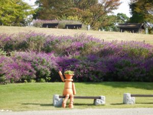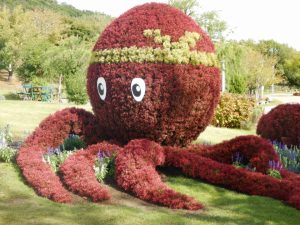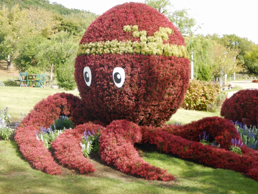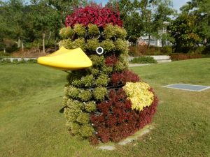 立体花壇「タコトピアリー」(場所:東浦口ゲート前)と「アヒル」(場所:大地の虹北花壇)