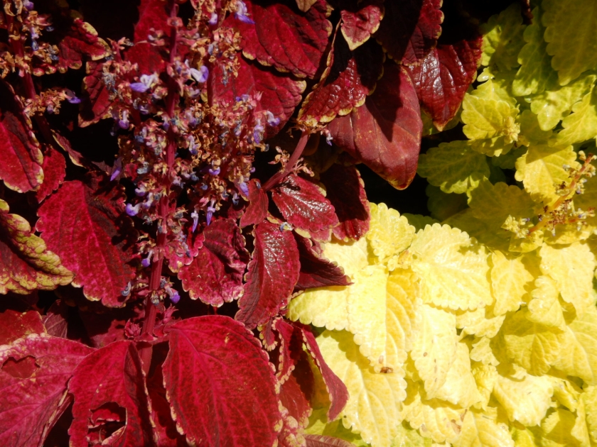大地の虹にそびえる巨大な花火鳥。立体部分はコリウス、尾羽の部分はアンゲロニアとペンタスでできています。全体がモッフモフに見えると思いますが、それはコリウスのお花がガッツリ開花しているからです。
