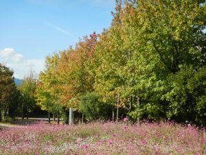 海のテラスにはポプラの丘と違う品種も植えてあり、見ごろになっています。