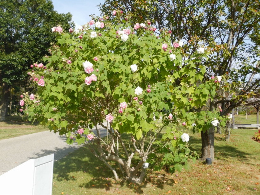 フヨウ、スイフヨウ(場所:花の丘道(ポプラの丘上段近く))