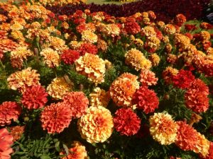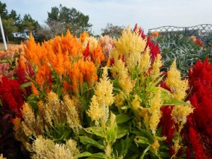 もふもふの羽毛ゲイトウです。一緒に植わったマリーゴールドの色と共にとても暖かそう