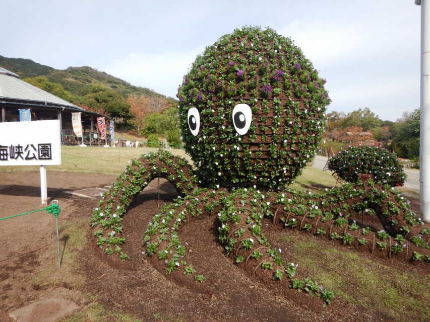 立体花壇「花火鳥」&「タコトピアリー」(場所:大地の虹、東浦口ゲート前)