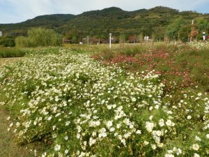 大地の虹北花壇のコスモスと移ろいの庭のマリーゴールドは今週末で今季見納めです。