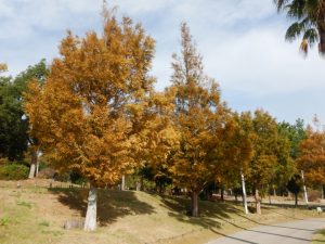 モミジバフウ&メタセコイヤの紅葉(場所:ボート乗り場周辺、パームガーデンほか)