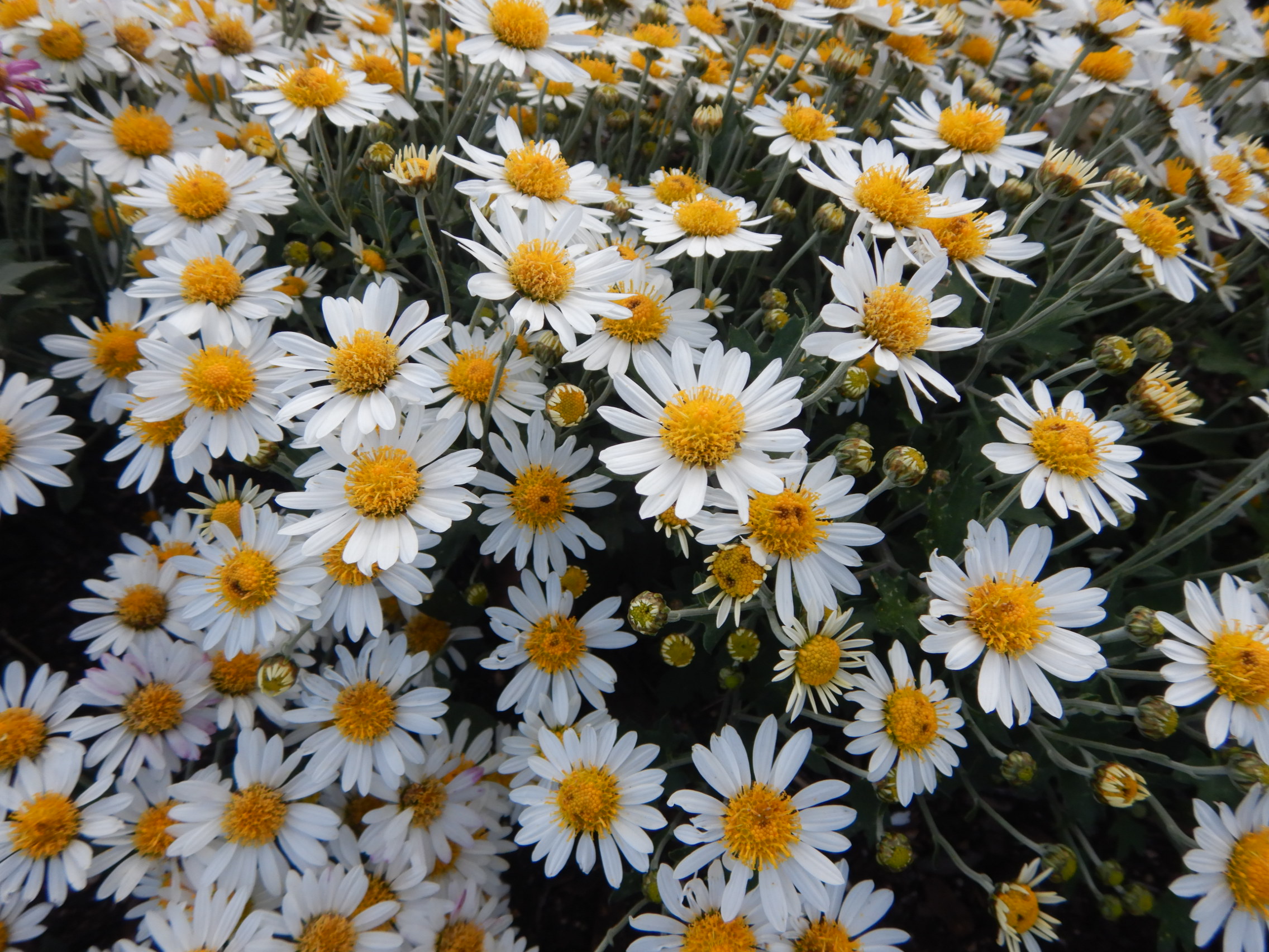 ひらひらした花びらがなく、中心の丸い部分だけのユニークな菊の仲間です。
