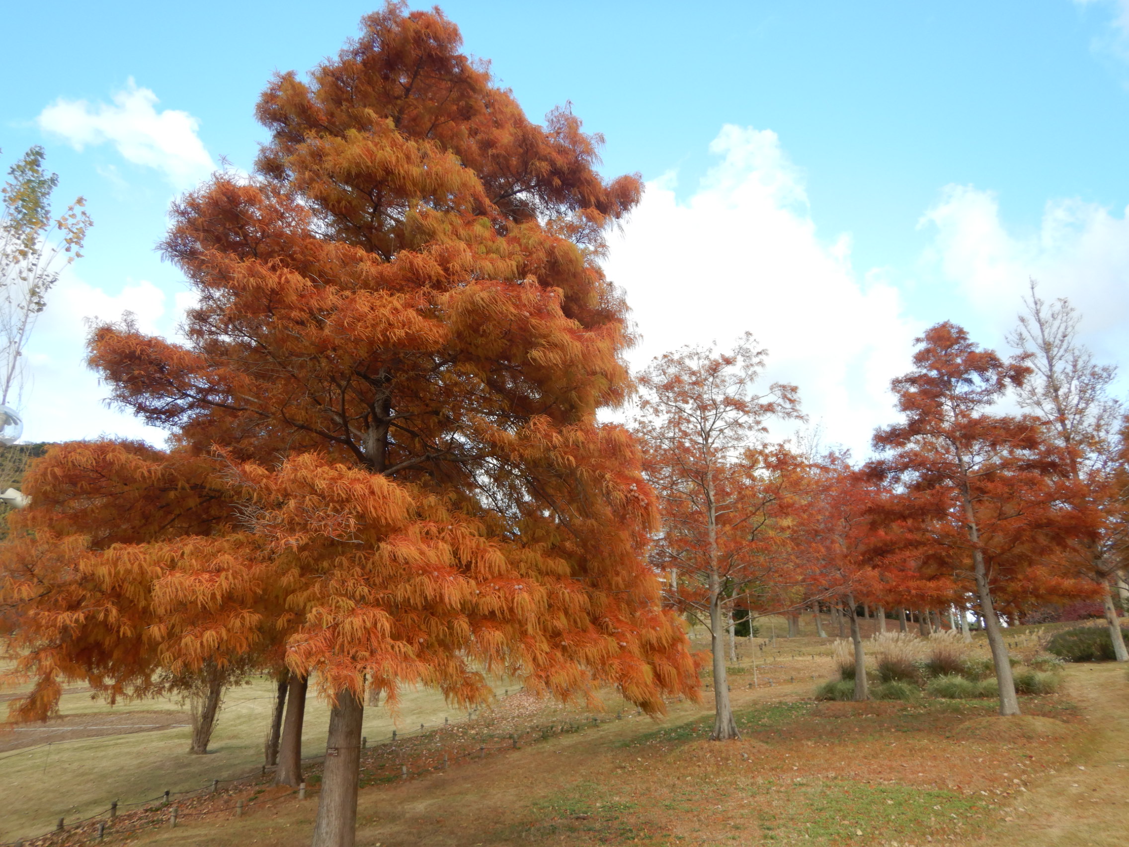 モミジバフウやラクウショウなど木々の紅葉も全体的にピーク過ぎとなりました。