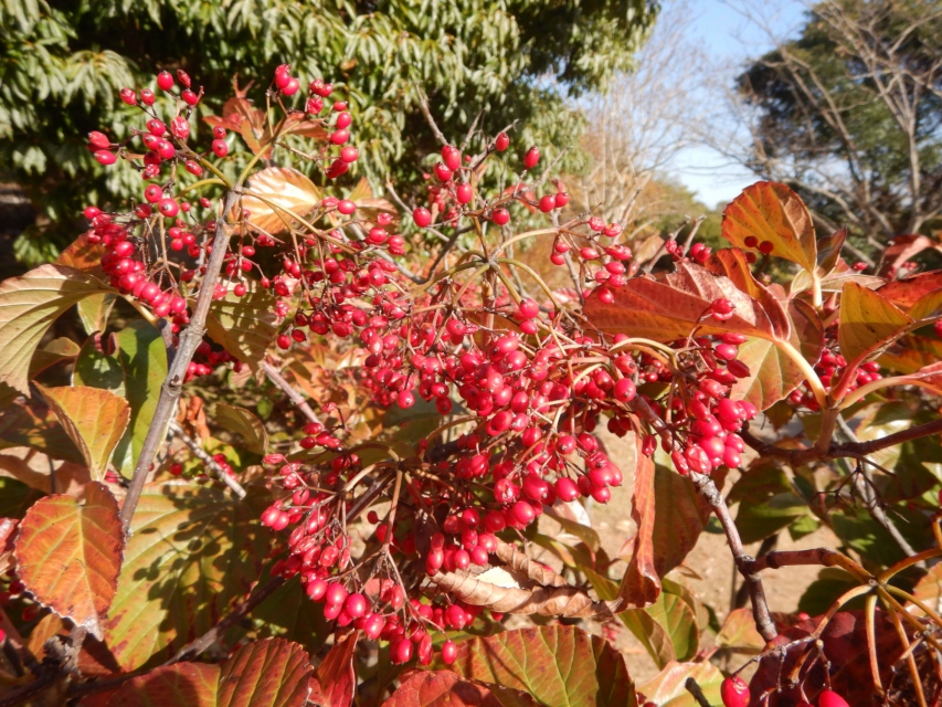 紅葉もほぼ終わり、葉っぱに隠れていた丸やトゲトゲなど、いろいろな形の木の実が見やすくなってきました。