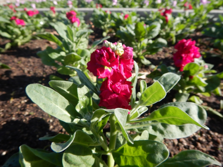 まだ株は小さめですが淡い色がかわいいストックのお花が咲き始めました。