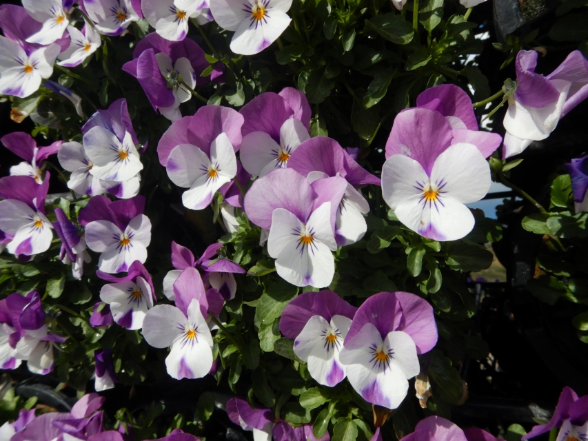 ビオラの花数が増えて鮮やかな羽色(花色)になりました。近寄るって見ると色々な花びらの模様や色の違いなども楽しめます。