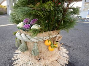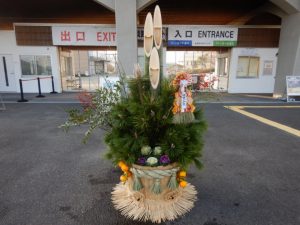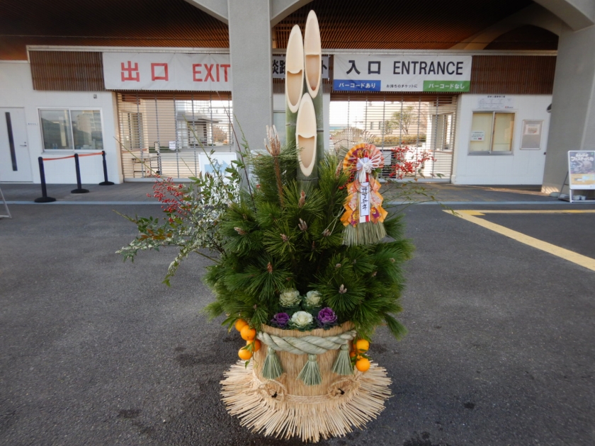 各ゲート前に門松を設置してありますが、淡路口ゲート前のものは園内で手づくりしました。松、竹、南天、柑橘類、ハボタンは全て淡路産です。特に松と柑橘類(鳴門オレンジ)は園内で収穫したものなんですよ!