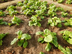 この冬のナノハナの成長は遅いです。1月半ばに見ごろ予定なのですが、はたして…。