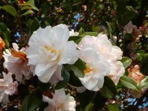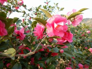 ツバキ類(場所:移ろいの庭ほか(カンツバキ)、花の谷の園路沿い(ワビスケ、ヤブツバキほか)