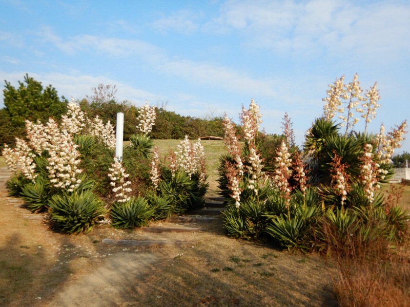 一昨年は11月前半、去年は12月前半で見ごろが終わったアツバキミガヨランですが、なんとこの冬は1月まで見ごろが続くようです。そして今年はニョキニョキ全部がほぼ同時期に開花しているため見栄えがよい!海岸口ゲート前はどの入口からも遠いのですが、お時間があったら是非見に行っていただきたいです。でっかいですよ(写真四枚目でハエの大きさと比較ください)。