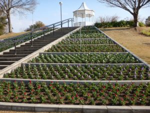 冬の園内は花が少ないですが、立体花壇のビオラはきれいですよ。