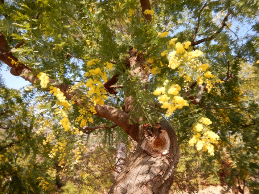 園内に約50本あるギンヨウアカシア。月のテラス周辺で12日(月)に、花の丘道は14日(水)に開花を確認と、今日の時点では開花はまだまだごく一部です。