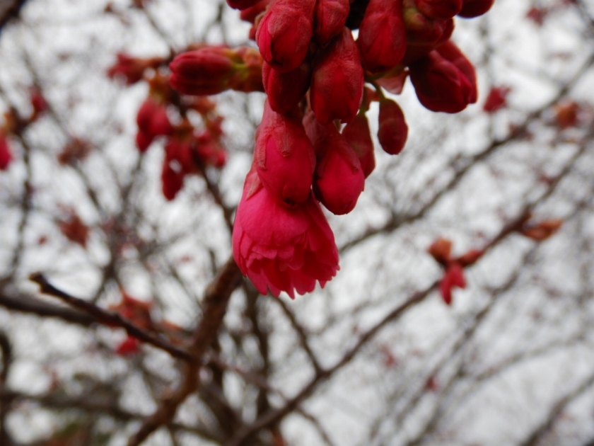 満開(八分咲き)は2月の終わり頃か・・・?!桜は突然一気に咲き進んだりするため、予想つきません。