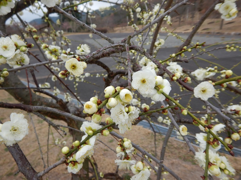 見ごろは3月以降ですが、例年1月からチラホラ咲き始めます。