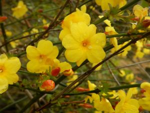 ウンナンオウバイ(雲南黄梅)は「梅」とありますがウメの仲間(バラ科)ではなく、モクセイ科です。なので香りがありません。