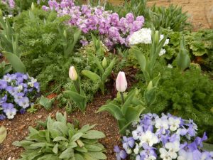 ビオラの株が大きくなってきており、花火鳥の尾羽の色がクッキリしてきました。他の立体花壇もモコモコ成長中。