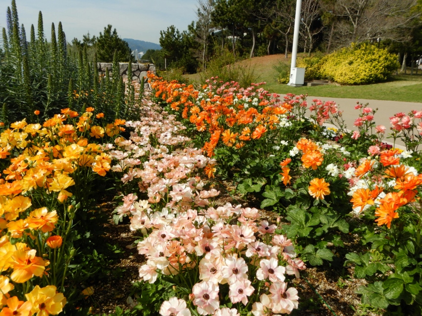 写真一枚目:パームガーデン、二枚目:海のテラス、三・四枚目:花の丘道