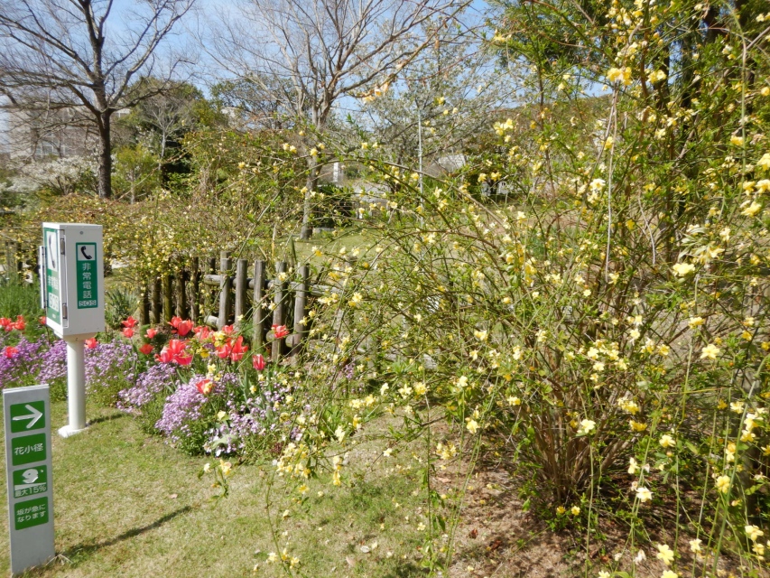 レンギョウ(場所:花の谷と松の谷の間の園路沿いほか)