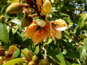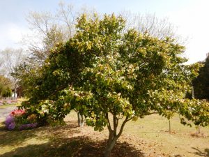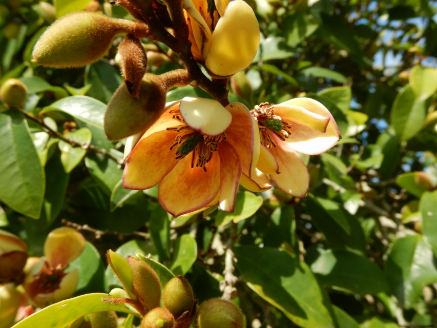 花の丘道に、そこはかとなくバナナの香りがし始めました。カラタネオガタマの花の香りです。香りを楽しむなら午後ですよ。花自体は地味なので見つけられないかもしれませんので、鼻で花を感じてね。