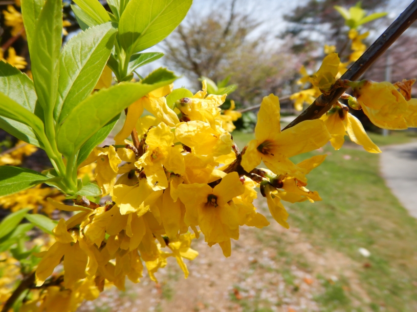 まだ小さめのレンギョウですが、色がハッキリしていて目をひきます。