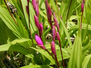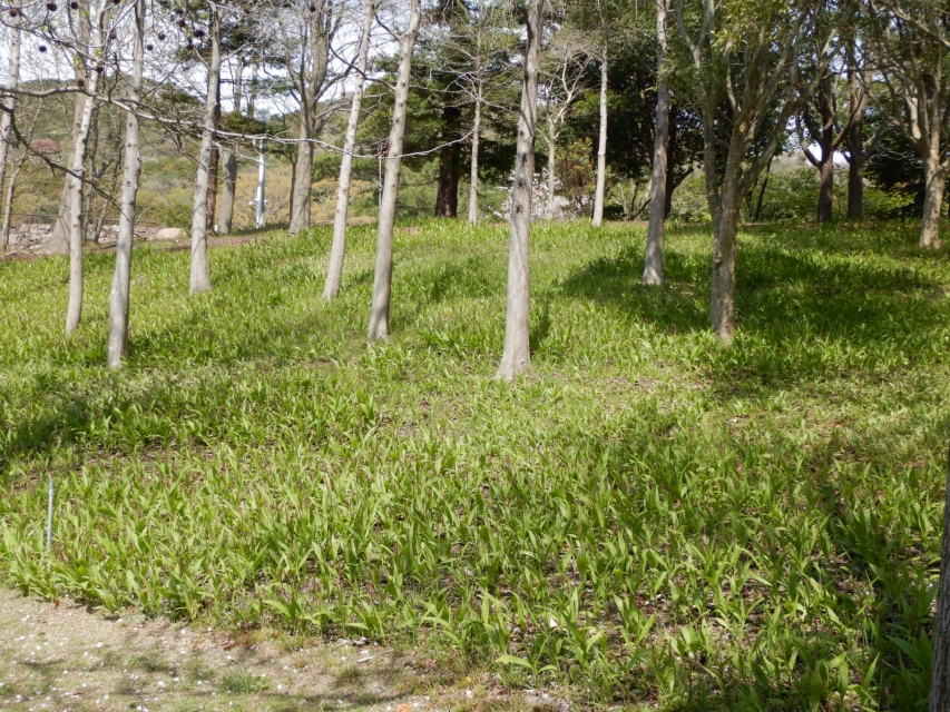 広く植えてある水の棚田周辺ではまだ咲いていません(写真一・二枚目)が、天壇テラスでは咲いていました(三・四枚目)。一面紫色になるまであと少し?!