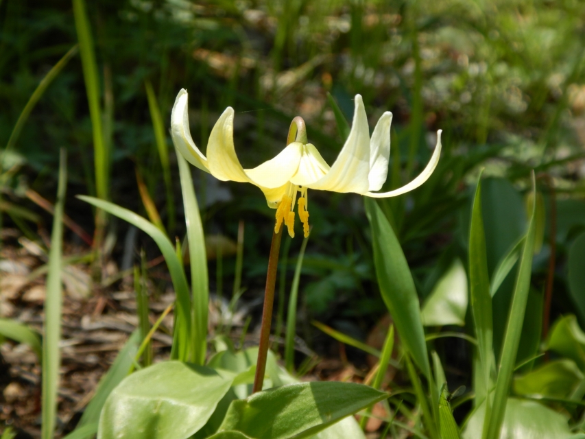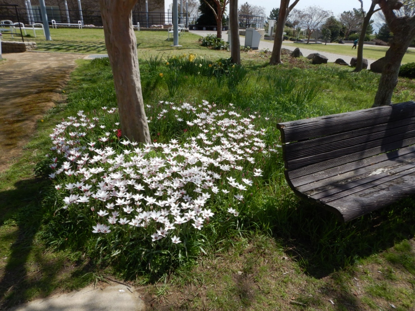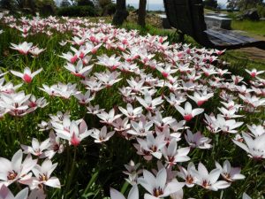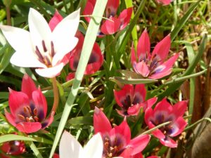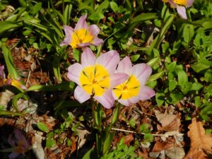 移ろいの庭の管理棟そばでは、原種系チューリップが咲いています。ピンク、白、赤など、これから数品種咲いていきます。ちびっこいので踏まないようお気をつけて。数は少ないですが、よ~く探すと近くにムスカリやらキバナカタクリやら(写真五・六枚目)も咲いていますよ。