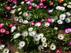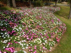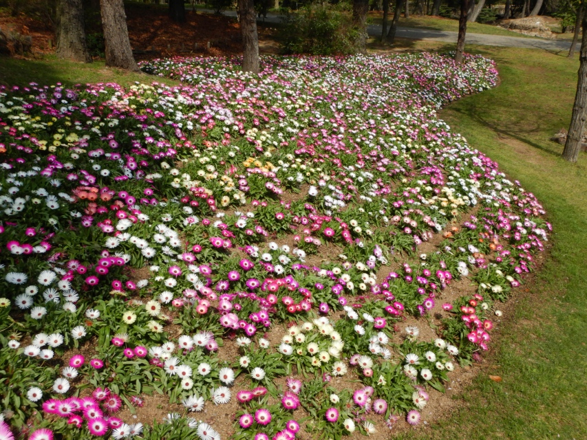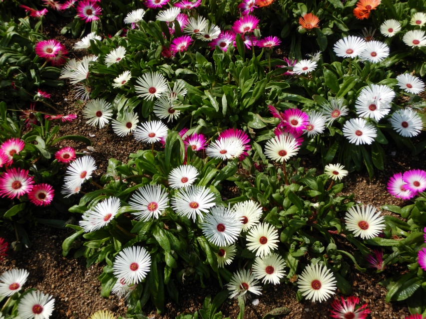 太陽が当たるとキラキラのお花が開くリビングストンデージー。見ごろは4月下旬になると思われますが、一株一株がだんだん大きくなり、ちょっとキラッとしてきました。青空の見える日以外は咲いていませんので悪しからず。