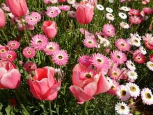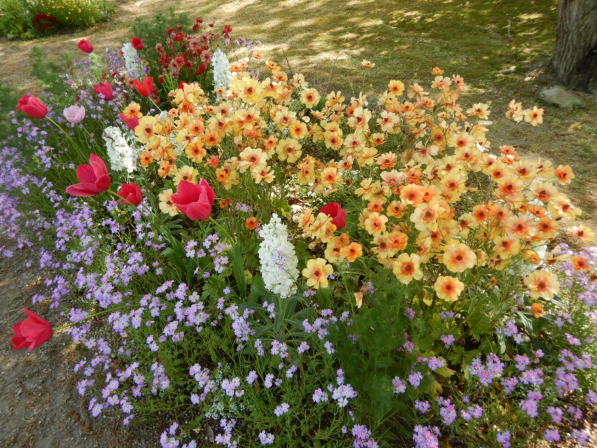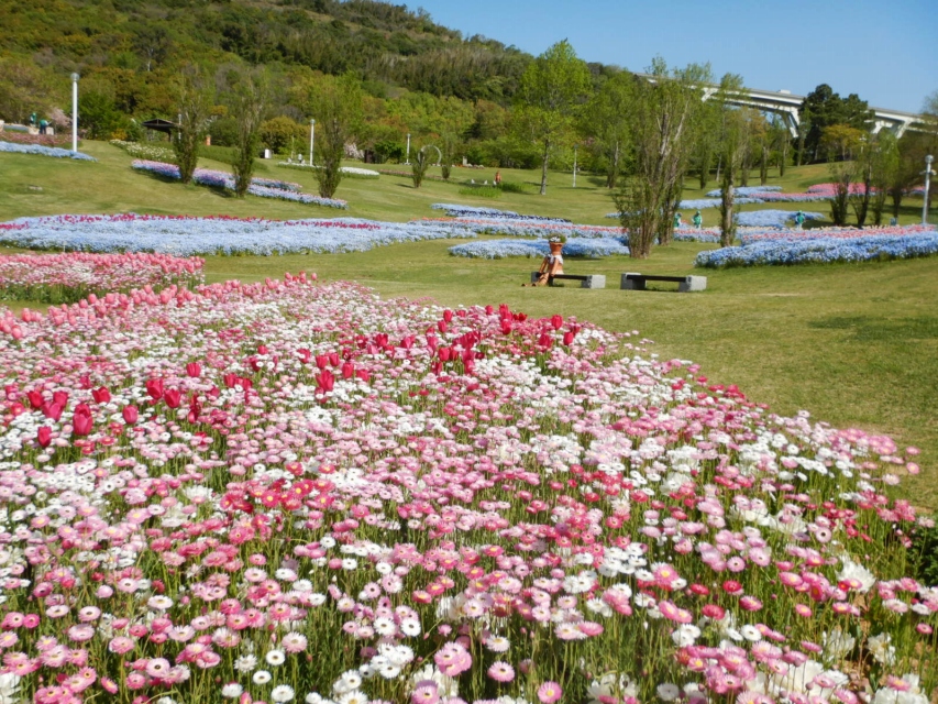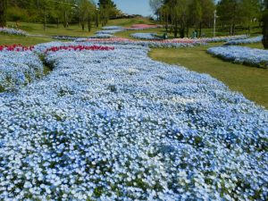 チューリップを紹介しているブログとっておき情報(←ここをクリック)の方の写真も併せて見ていただくとより状況がわかると思いますが、きれいに咲いていますよ。チューリップが終わっていてネモフィラだけの花壇もありますので「水色だけの写真が撮りたいのに~」という方も、撮りようによっては撮れますので、是非いらしてください。