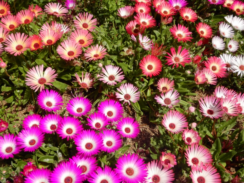 太陽が当たるとキラキラのお花が開くリビングストンデージーが見ごろとなってきました。青空の見える日以外は咲いていませんので悪しからず。