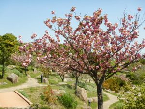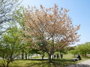 園内には約300種のサクラがありますが、春咲きのサクラはそろそろ見納めになりそうです。現在は4月中旬から下旬に開花する桜が咲いています。ほとんどが八重咲きのサクラでボリューム感があります。園内のところどころできれいに咲いております。