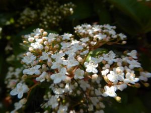 秋になると真っ赤な小さい実がたわわになるハクサンボクですが、花はあまり目立ちません。でもよく見ると‘米粒みたいな梅’という感じでかわいいんですよ。