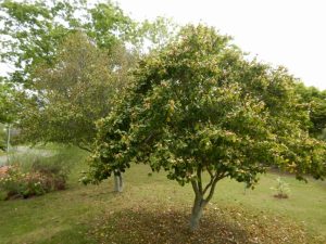 黄緑色の葉っぱに真っ白の短冊のような花びらがヒラヒラしています。目立たない木なのですが、気付くと爽やかさを感じられる木だと思います。