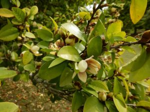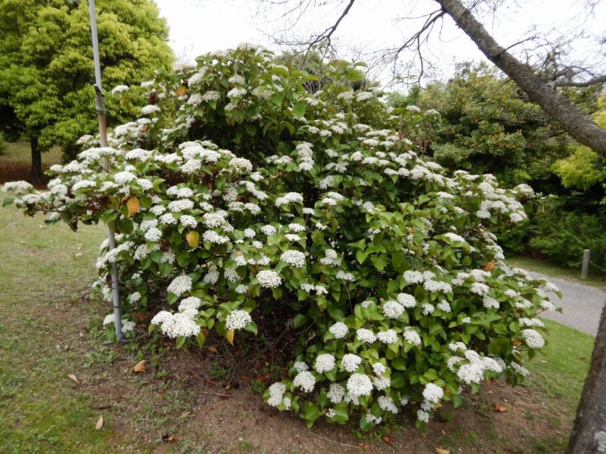 花の丘道でそこはかとなくバナナの香りがしますが、それはカラタネオガタマの花の香りです。香りを楽しむなら午後ですよ。写真二枚目を見ていただくとわかるように、木の枝にビッシリ花がついているんですが、地味なんですよ~。見た目は地味、香りは華やか。鼻で花を感じてね。