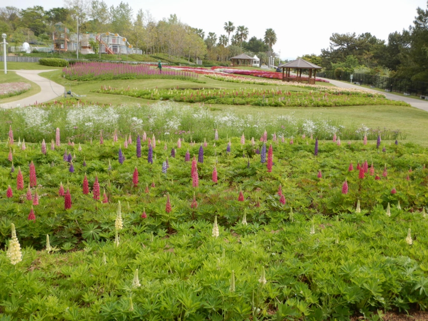 ナデシコ、キンセンカ、ルピナス、ジギタリスほか(場所:大地の虹北花壇