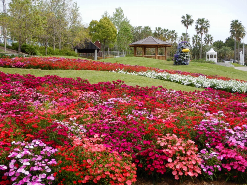 写真一・二枚目:パームガーデン、三枚目:海のテラス、四枚目:花の丘道